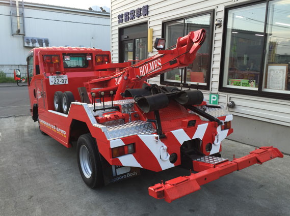 WRECKER HOLMES 3105を搭載したレッカー車。主に普通車・小型貨物までを牽引する際に出動します。